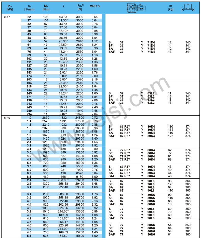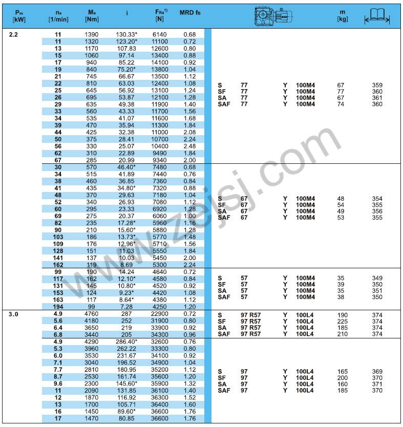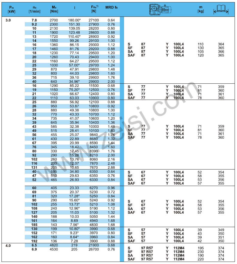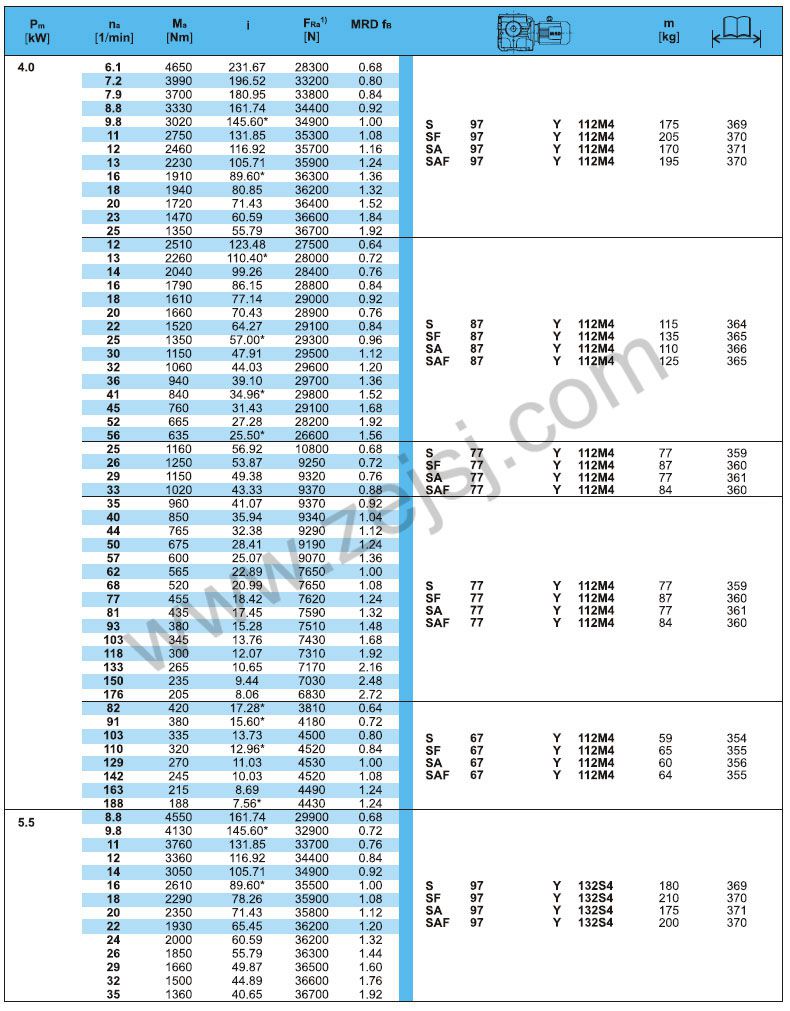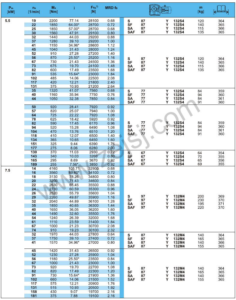S-軸伸式聯(lián)接; SA-軸裝式聯(lián)接