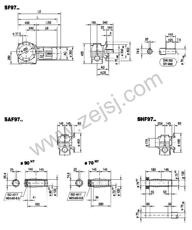 SF-軸伸式、法蘭安裝; SAF-軸裝式、法蘭安裝