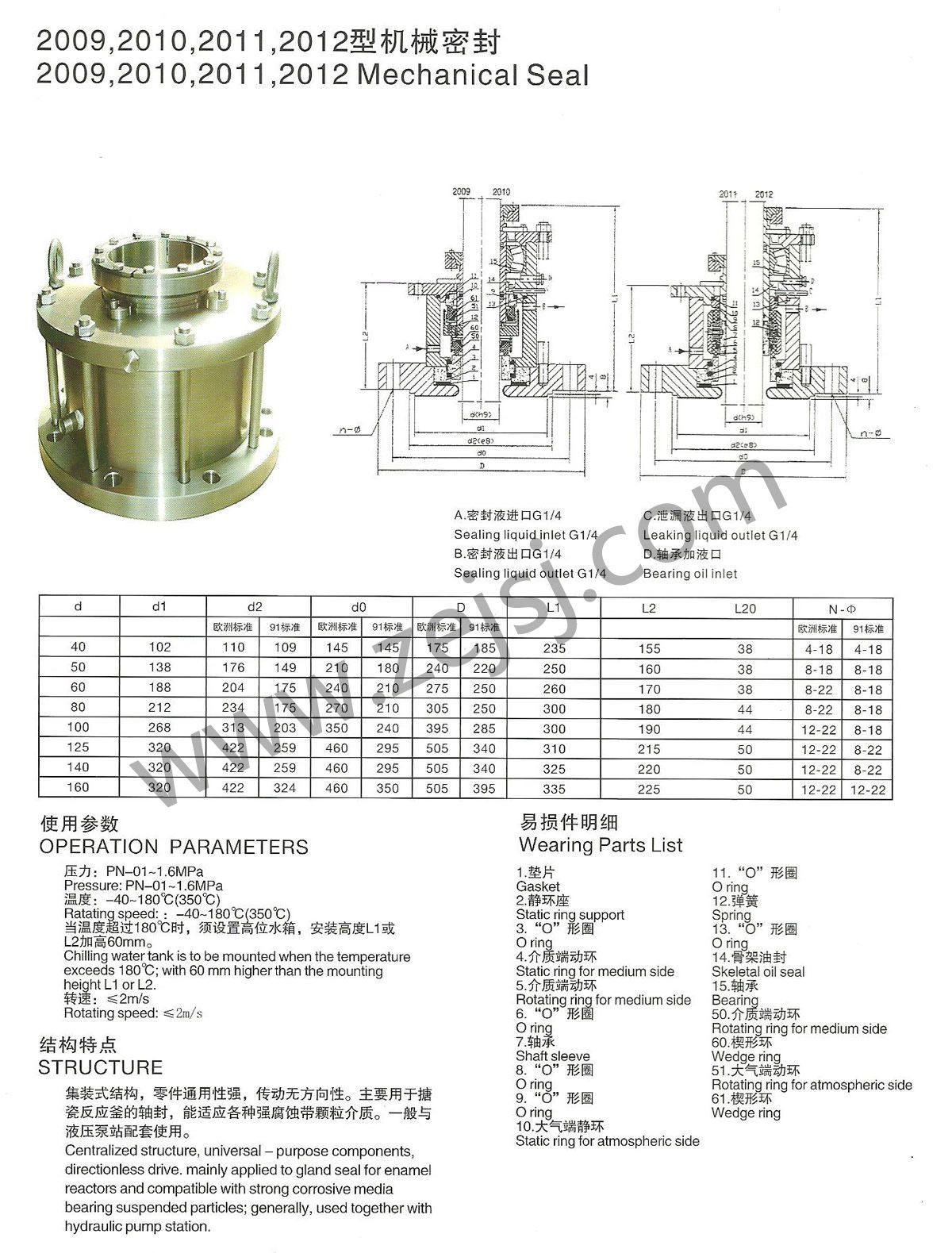 2009,2010,2011,2012型機械密封